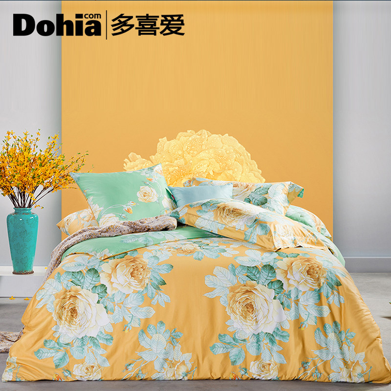 多喜爱四件套正品全棉清仓1.51.8床上田园风纯棉被套床单床笠床品
