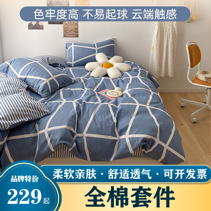 多喜爱全棉四件套北欧简约宿舍三件套床单被套家用1.8m床笠款