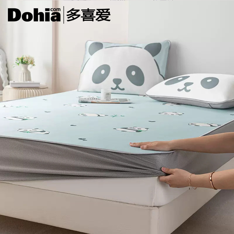 多喜爱A类软凉席国风熊猫凉席夏天可折叠席子床笠款可机洗水洗