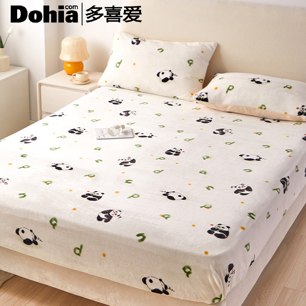 多喜爱绒床笠单件加厚珊瑚法兰绒床罩防滑固定床垫保护套小熊猫