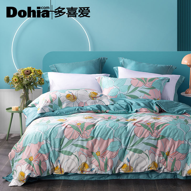 多喜爱全棉四件套纯棉床笠款床上用品田园风被套1.8米床素雅直播