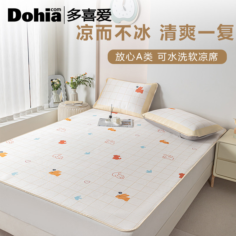 多喜爱可水洗A类软凉席简约ins风夏天席子三件套床笠可机洗单人