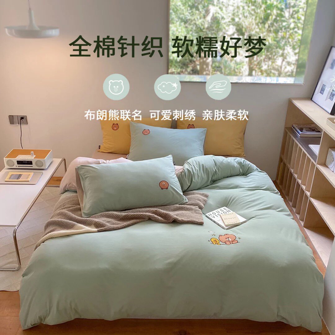 【直播推荐】多喜爱布朗熊针织棉四件套刺绣套件全棉纯棉床笠款