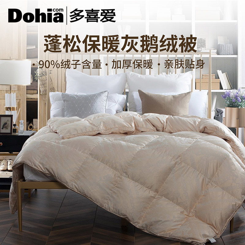 多喜爱羽绒被鹅绒被蓬松保暖灰鹅绒春秋被加厚被芯大提花家用冬被
