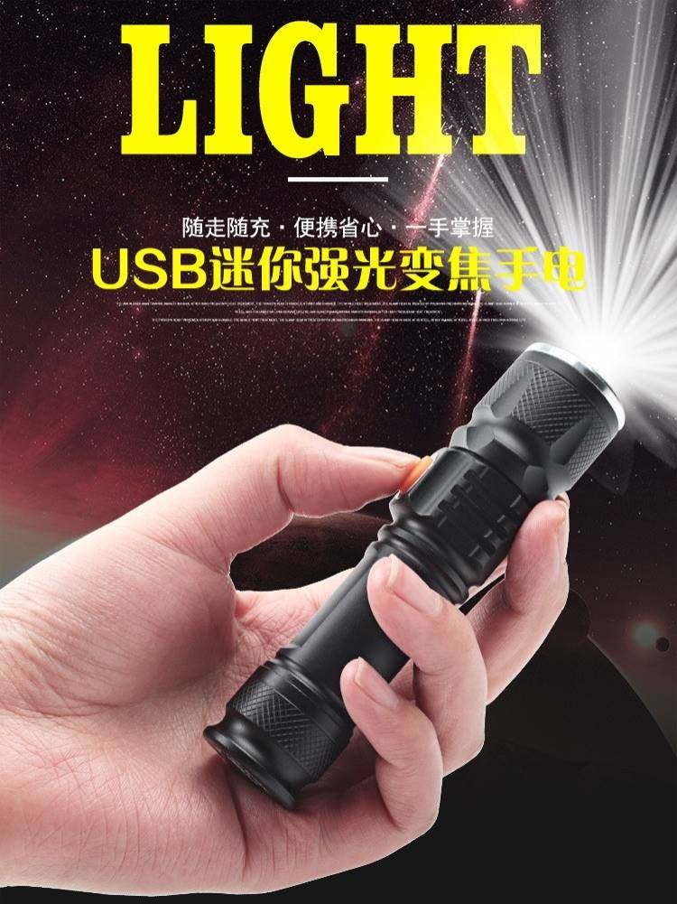 夜驴骑强光手电筒充电可调焦LED高亮远射迷你家用户外防身手电