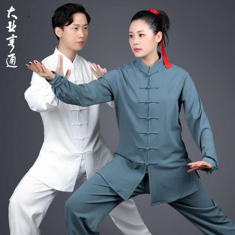 大业亨通太极服男春秋太极拳练功服女棉麻服装新款飘逸表演训练夏