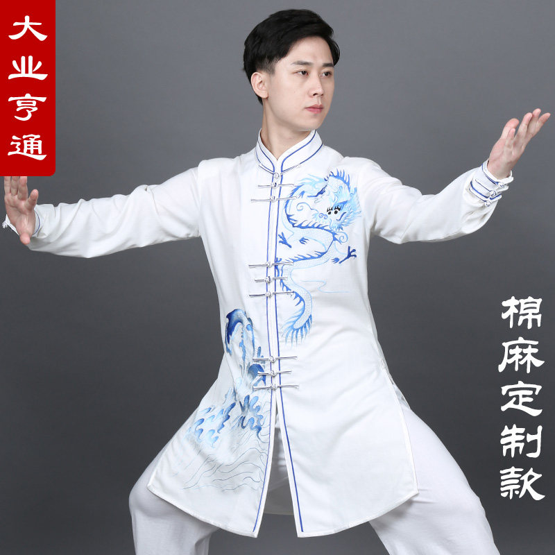 棉麻太极服女太极拳练功服男秋冬秋装冬加厚龙刺绣中国风新款飘逸