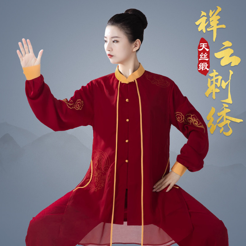 大业亨通武术竞赛服表演比赛真丝太极服刺绣太极拳练功服新款男女