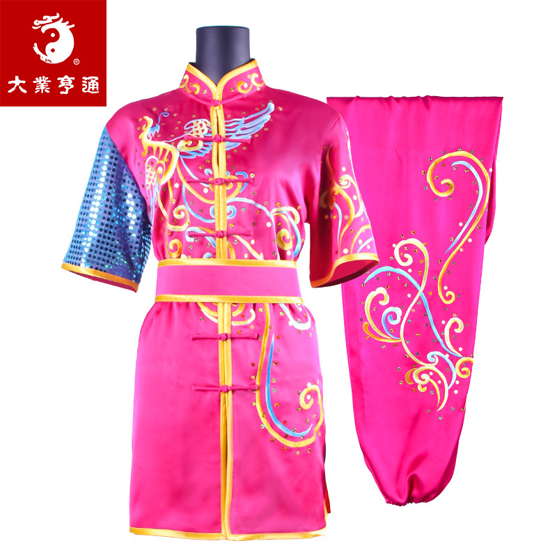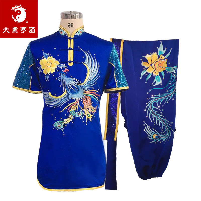 大业亨通武术表演服女武术服练功训练真丝凤凰彩服男刺绣太极服装