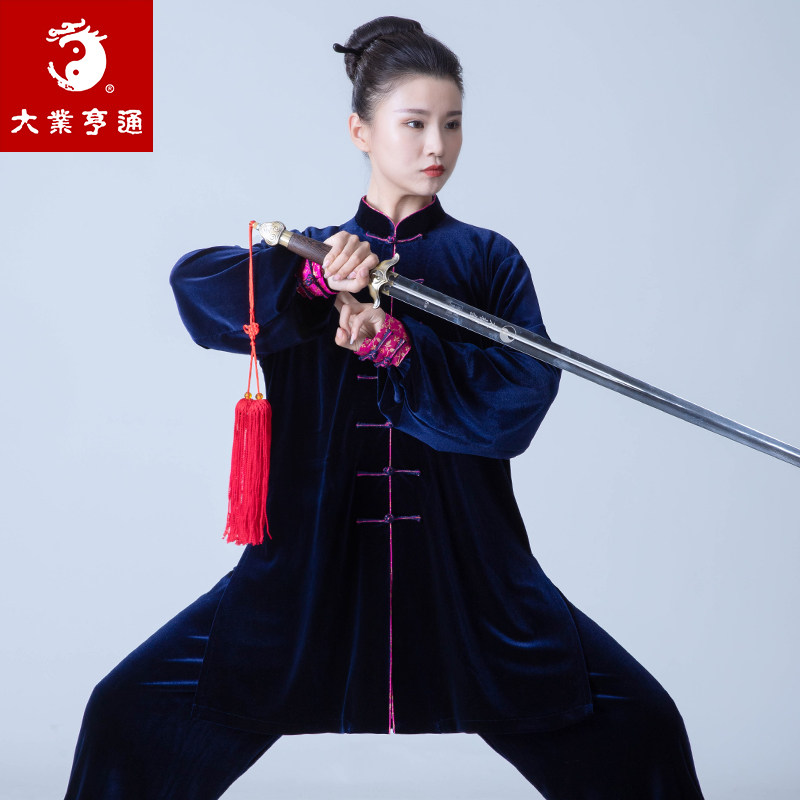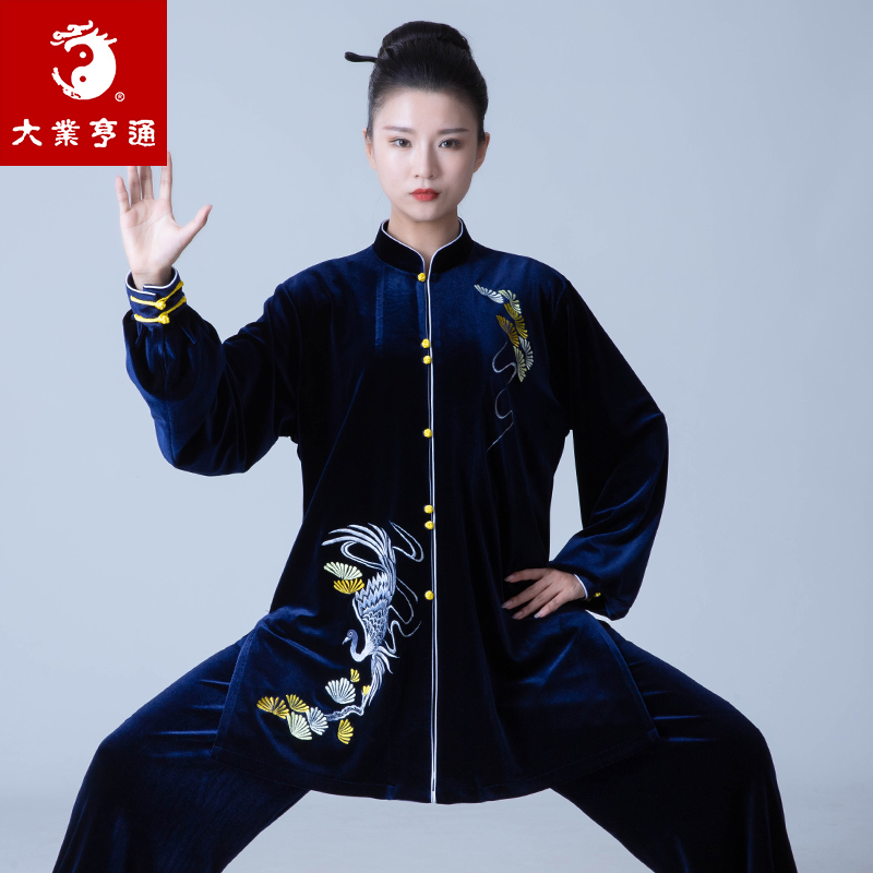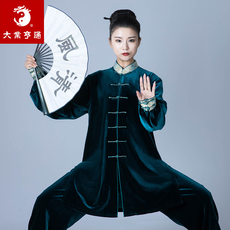 大业亨通金丝绒太极服男女秋冬季加厚保暖南韩绒太极拳武术练功服