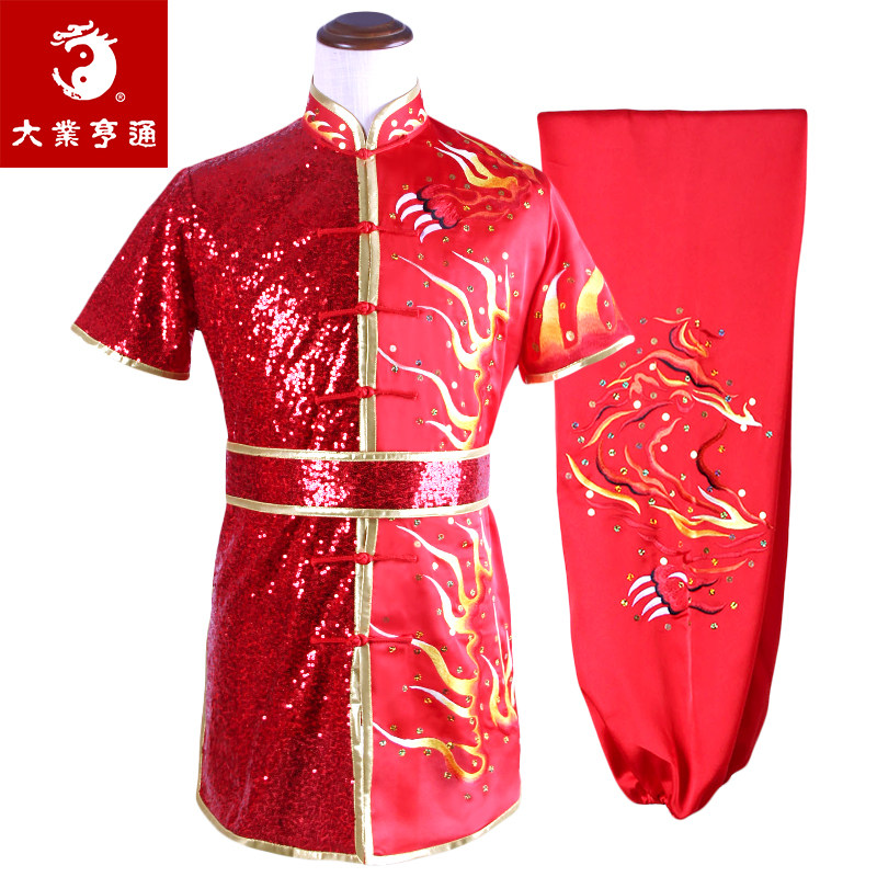 大业亨通武术表演服男长拳比赛练功刺绣服装定制演出服装太极训练