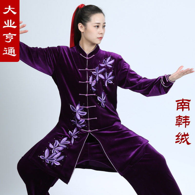 金丝绒太极服女秋冬加厚南韩绒新款高端练功服男冬季服装武术表演