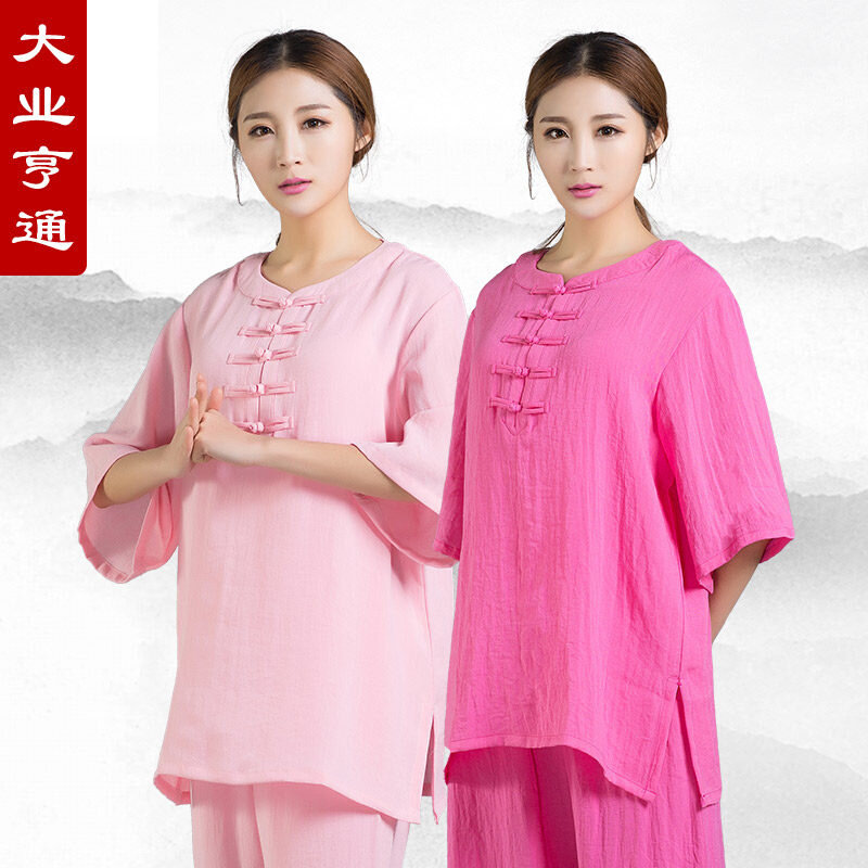 大业亨通太极服女新款飘逸太极拳练功服女男夏季服装棉麻亚麻套装
