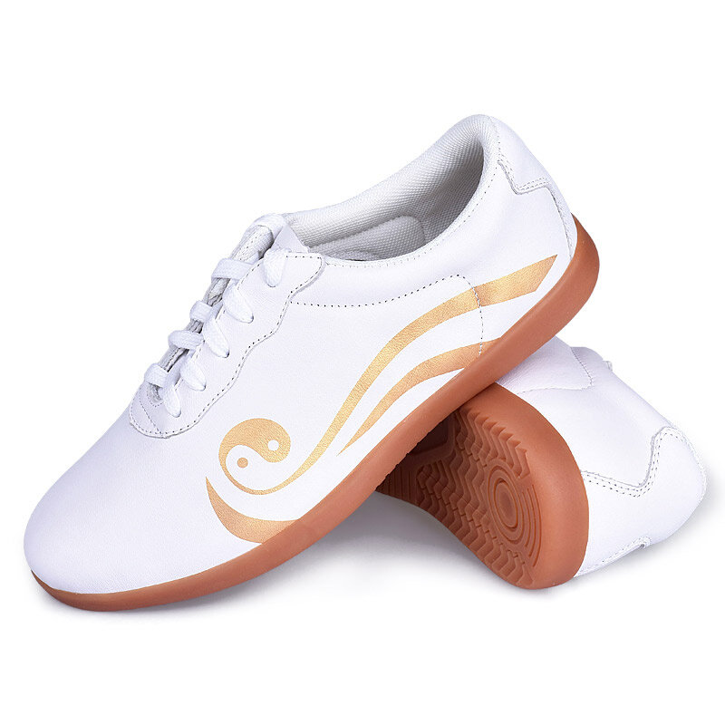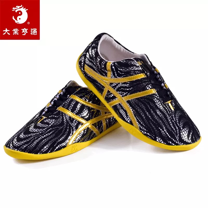 大业亨通新款武术太极运动鞋头层牛皮软底练功鞋中华祥云功夫鞋
