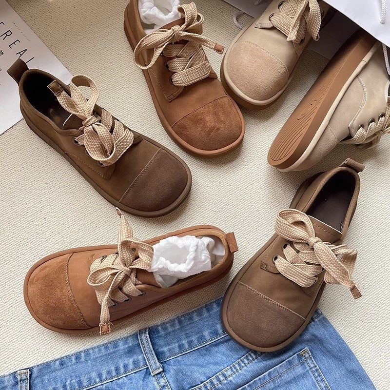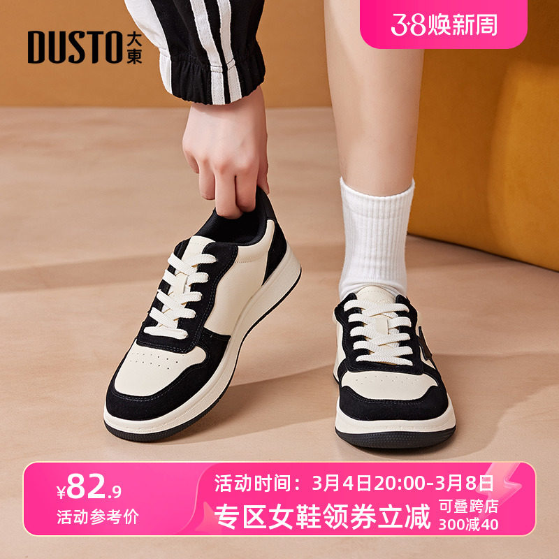 大东板鞋女2023春季新款休闲风中跟平底小白鞋圆头系带女鞋0400