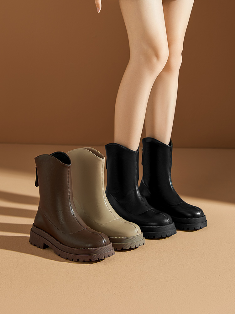 大东时尚短靴女2023秋冬新款休闲圆头中跟后拉链粗跟靴子女鞋0600