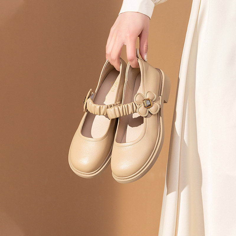 大东官方旗舰店休闲小皮鞋女2023春季新款甜美小花圆头玛丽珍单鞋