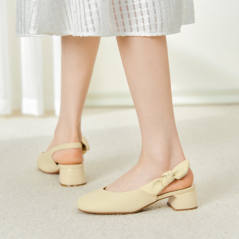 大东时尚板鞋女2023夏季新款休闲风中跟平底小白鞋圆头女鞋0686