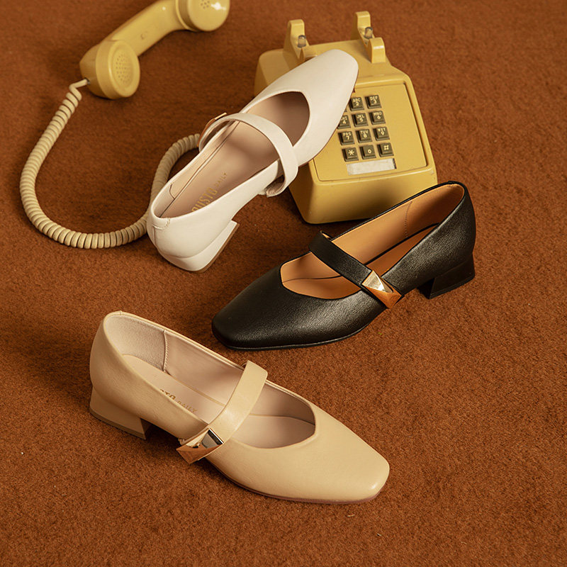 大东浅口鞋女2023秋季新款休闲套脚中跟气质小方头玛丽珍女鞋0107