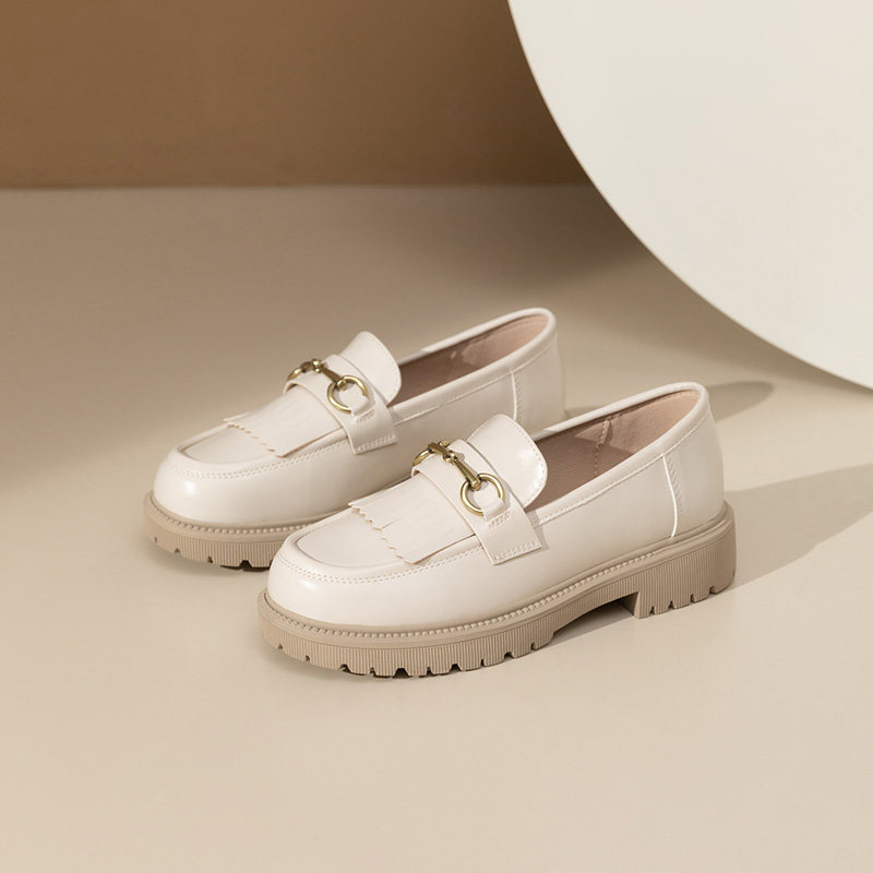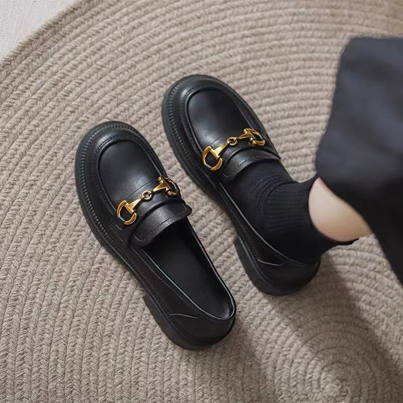 大东小皮鞋女鞋2024春秋新款简约休闲圆头厚底乐福鞋套脚单鞋0111