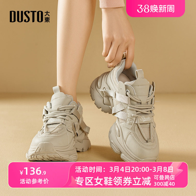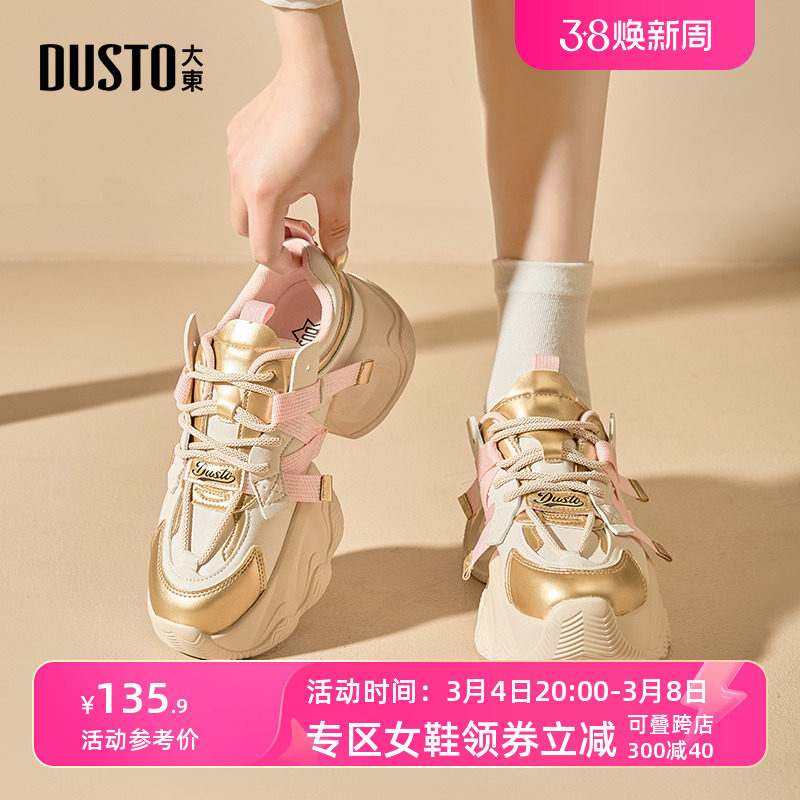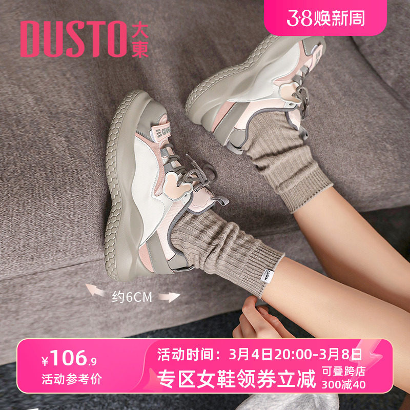 大东女鞋老爹鞋2023秋冬季新款甜美风厚底休闲运动鞋轻便跑步鞋子