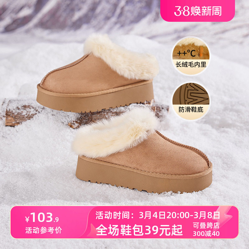 大东雪地靴2023冬季新款休闲长毛绒套脚厚底便捷面包靴女鞋0716
