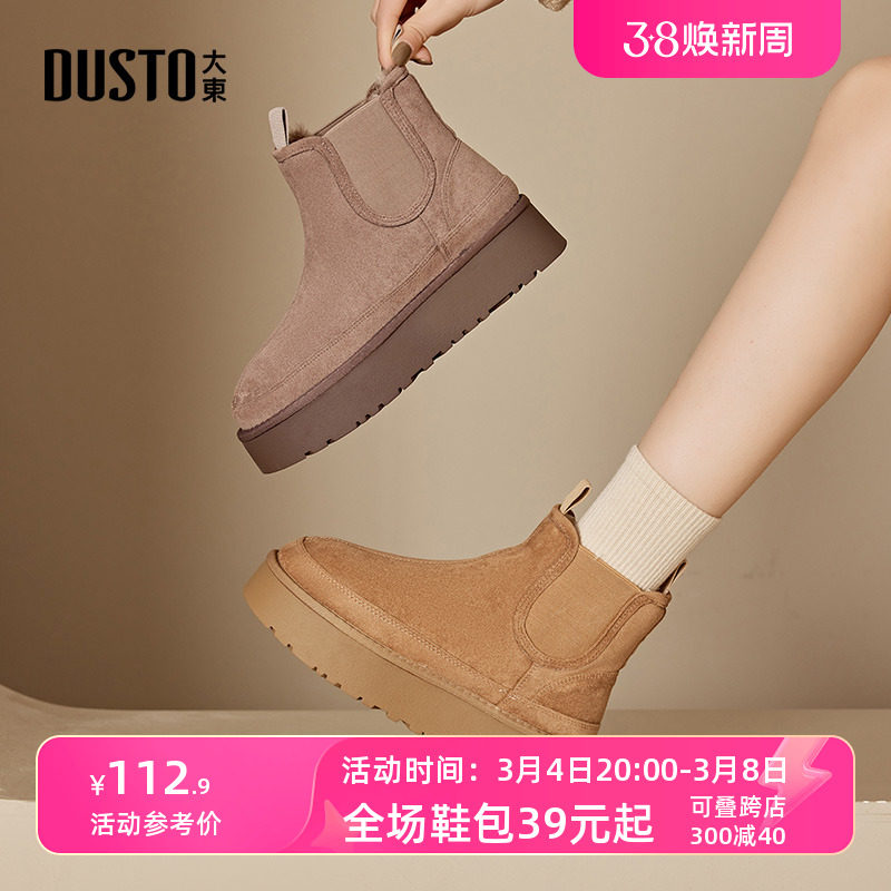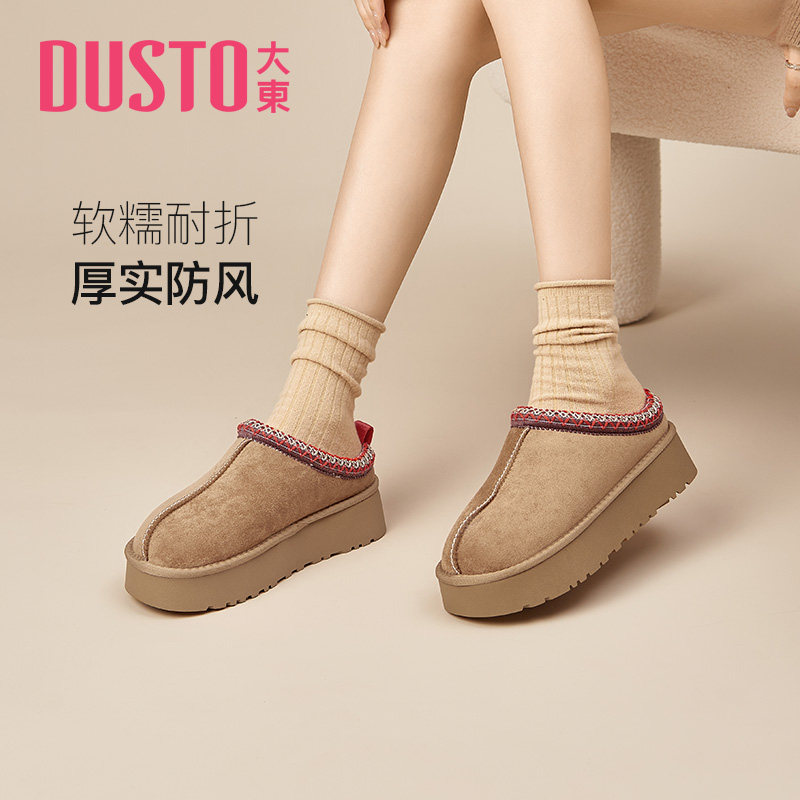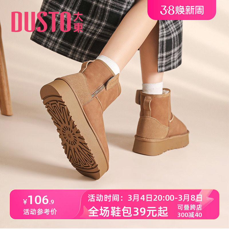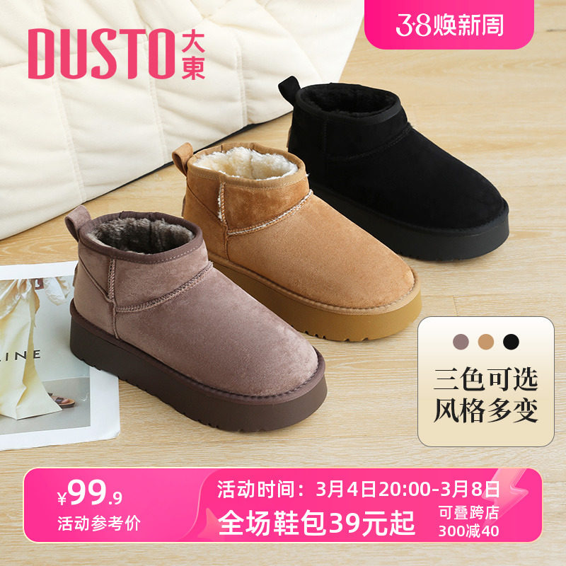 大东雪地靴2023冬季新款休闲圆头长毛绒套脚厚底保暖短靴女鞋0726