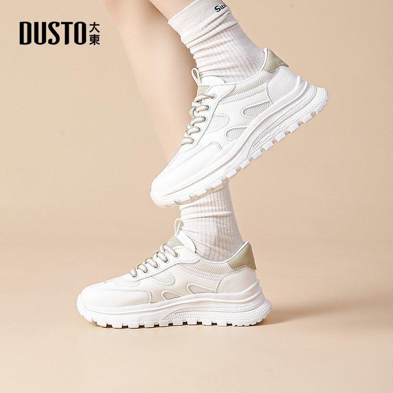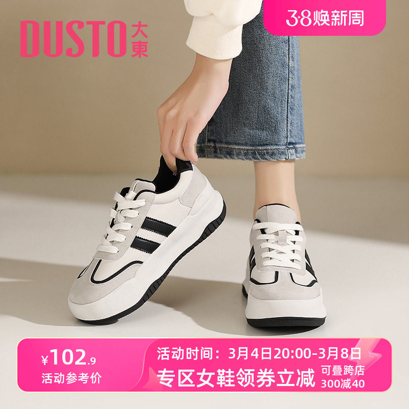 大东时尚运动鞋2024春季新款休闲中跟平底板鞋圆头小白鞋女鞋3076