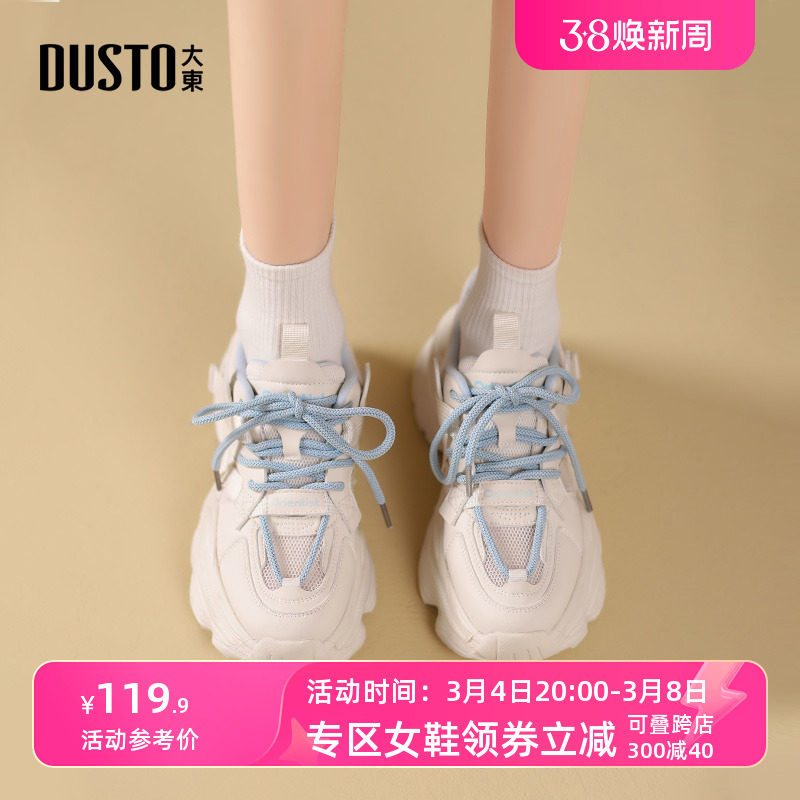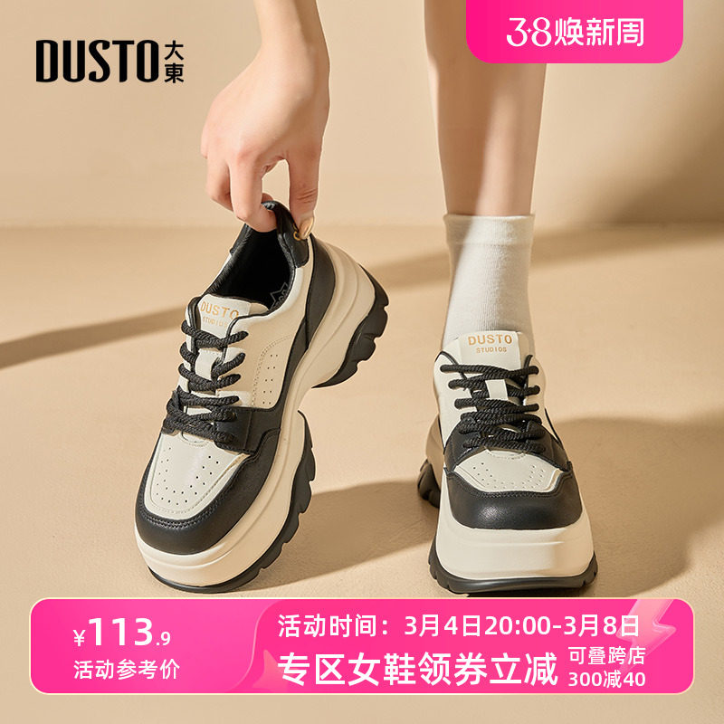 大东老爹鞋女鞋2024春新款时尚休闲厚底系带圆头小个子运动鞋0902