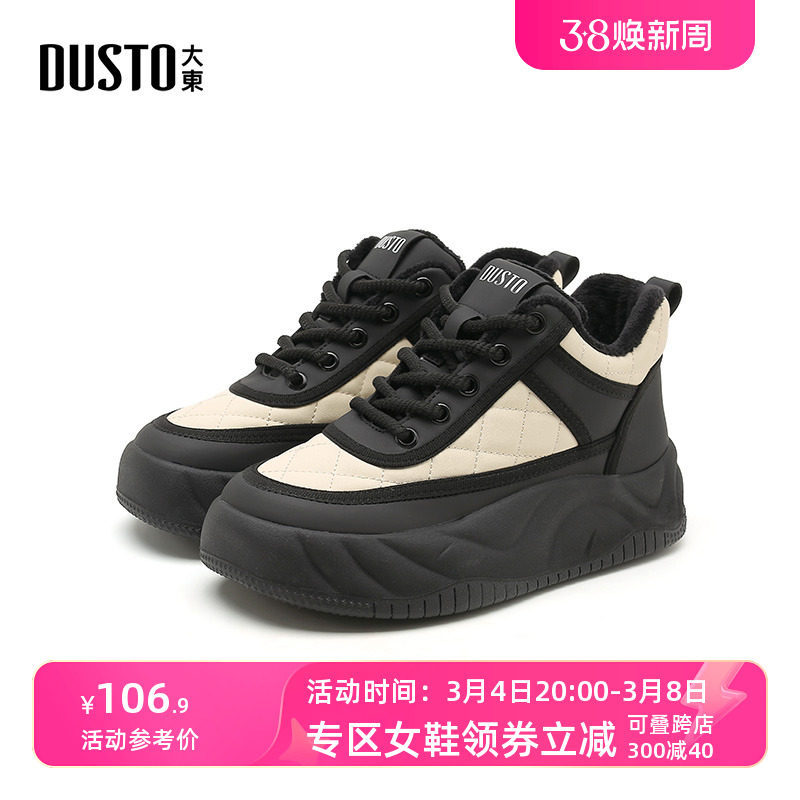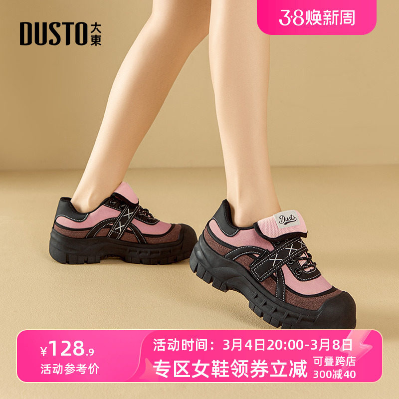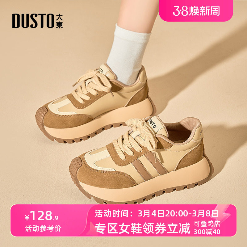 大东老爹鞋2024早春新款休闲圆头厚底系带拼接面包鞋运动女鞋0675