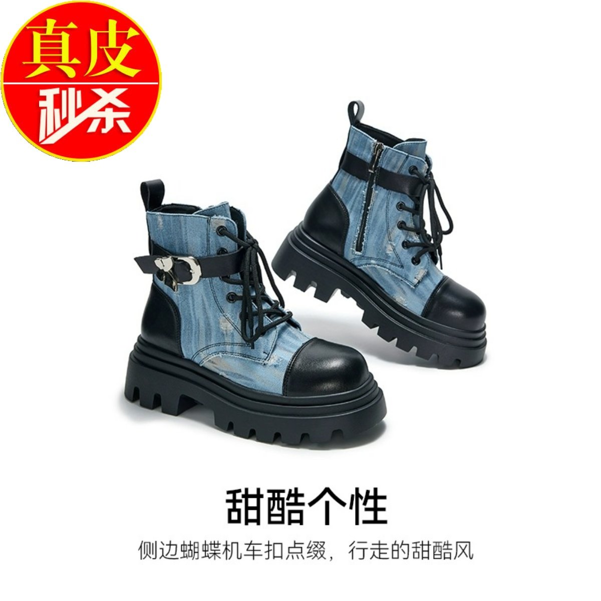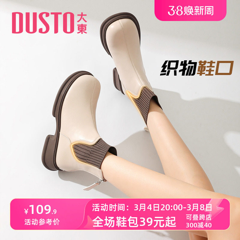 大东时装靴2023冬季新款休闲拼接圆头粗跟后拉链切尔西靴女鞋0116