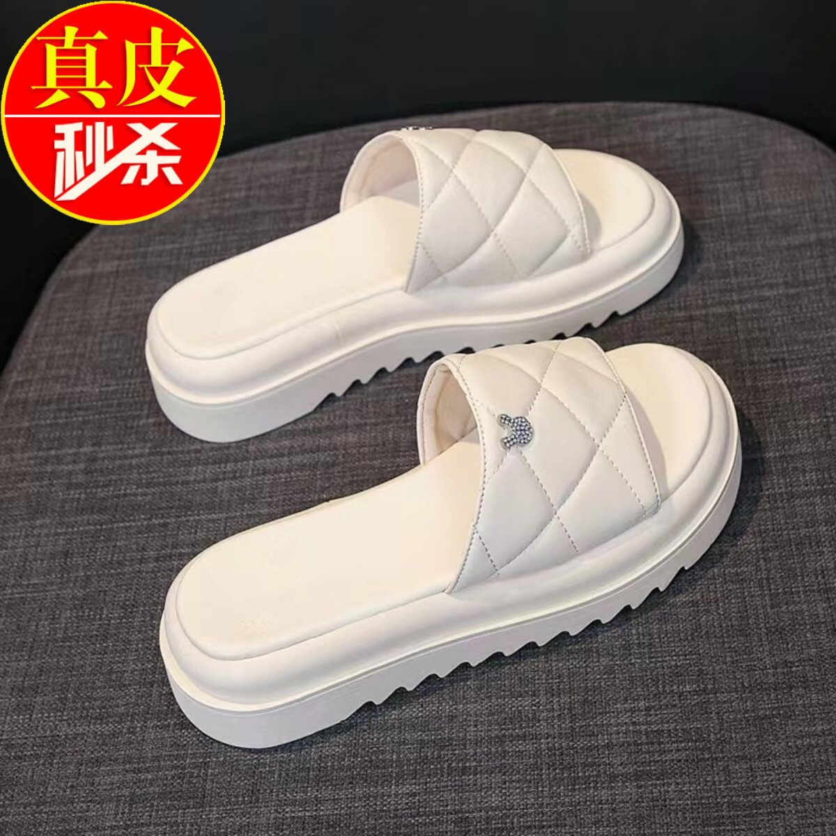青蕴真皮凉拖鞋女夏季外穿新款百搭时尚高级感潮厚底休闲沙滩拖鞋