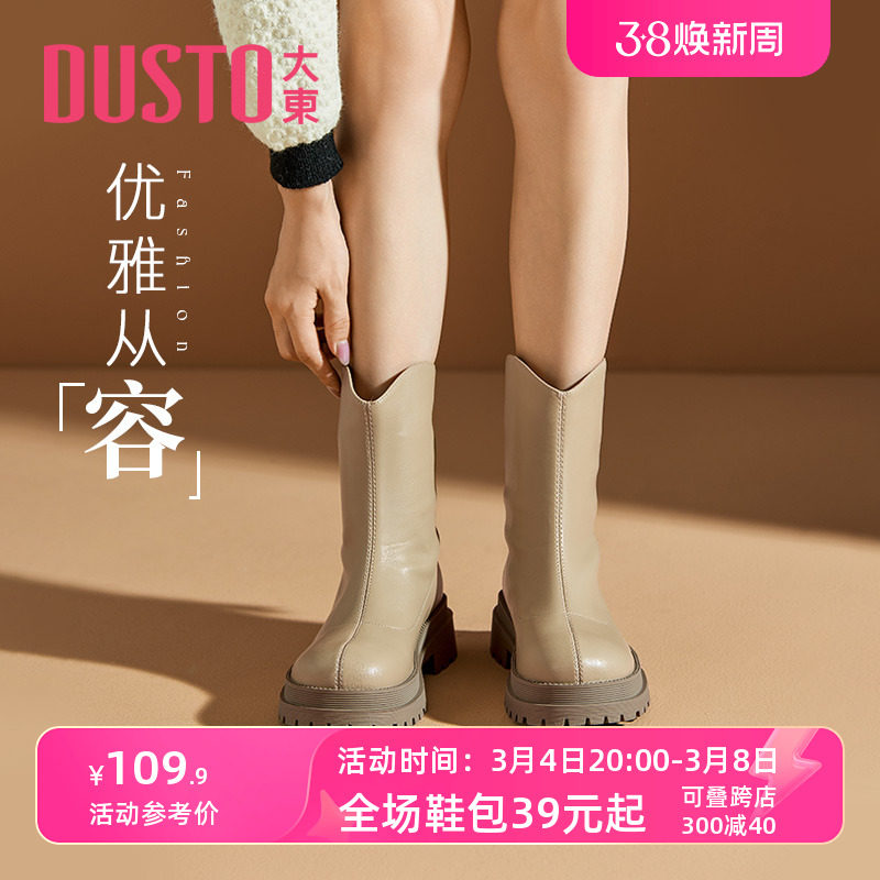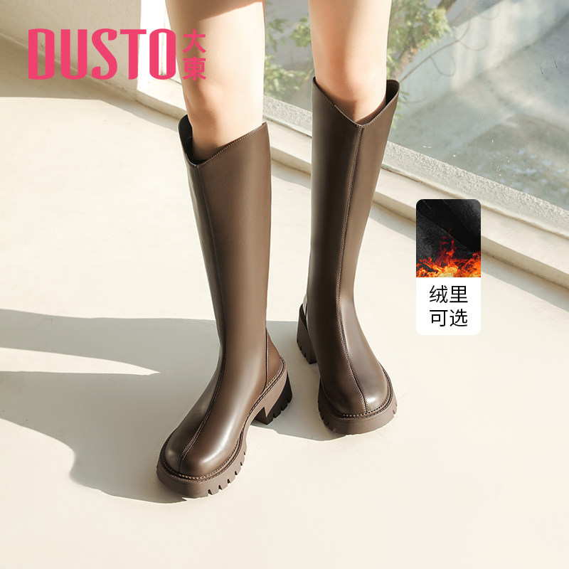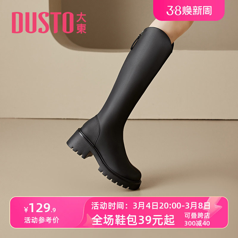 大东长筒靴2023冬季新款休闲时尚不过膝高跟后拉链骑士靴女鞋0649