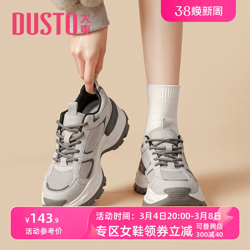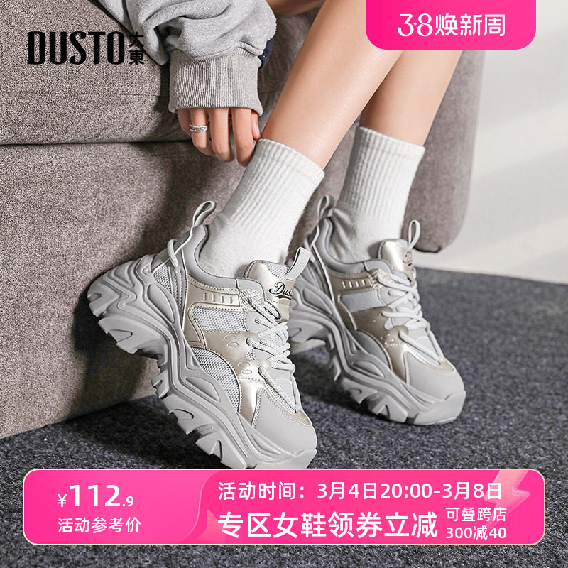 大东时尚老爹鞋女2024春季新款休闲风高跟平底运动鞋系带女鞋0701