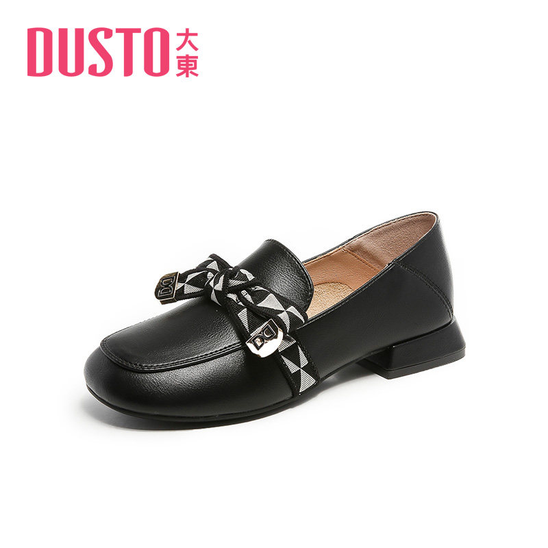 大东休闲小皮鞋女2023早春新款简约圆头套脚学生方跟乐福鞋0600