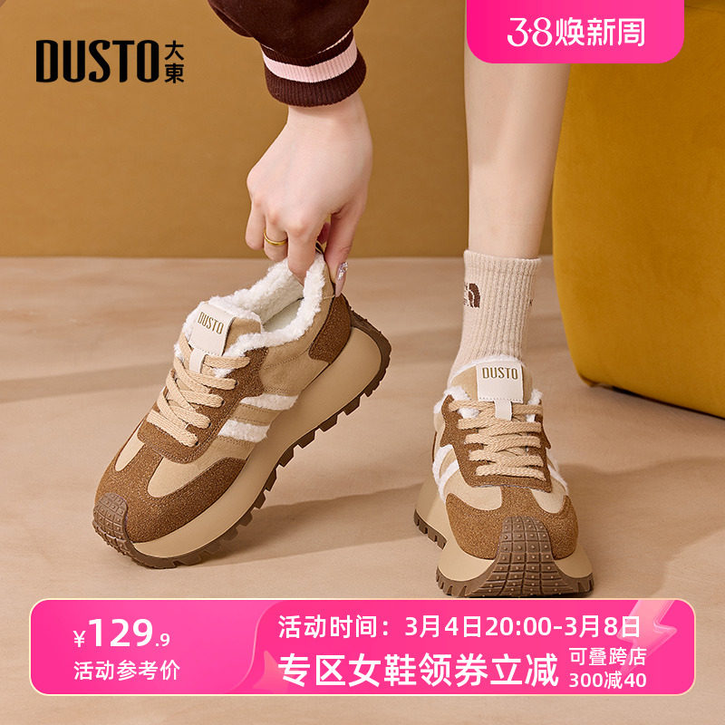 大东老爹鞋2024早春新款休闲圆头绒里厚底系带丑萌面包鞋女鞋0671