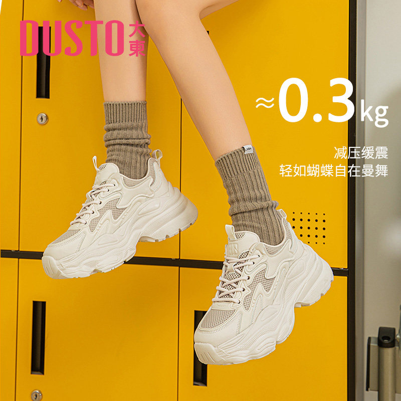 大东老爹鞋女2023春秋季新款增高厚底网面透气学生休闲运动跑步鞋