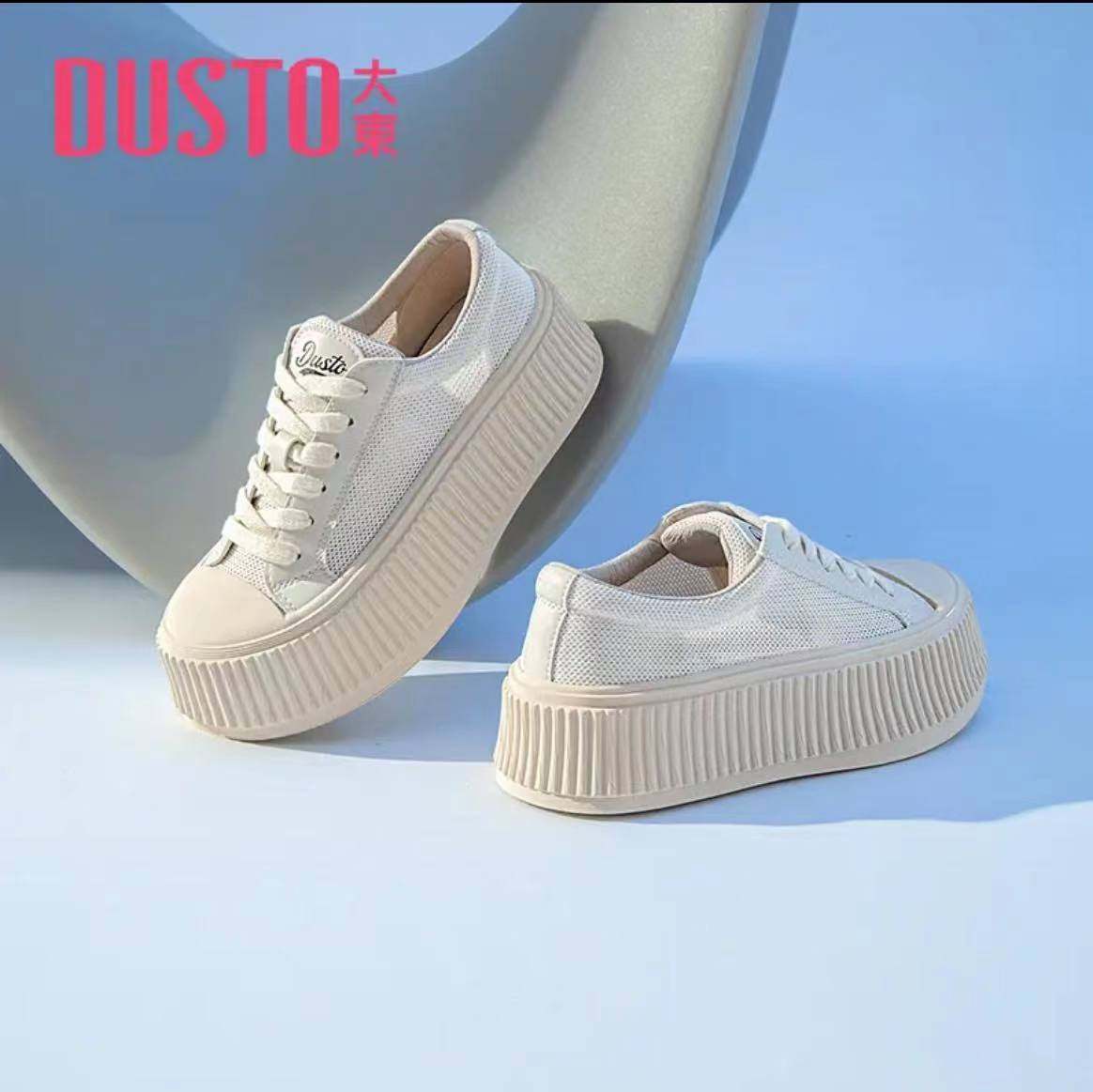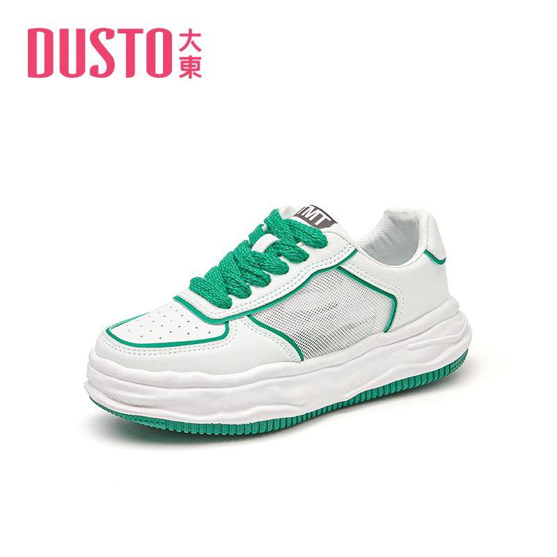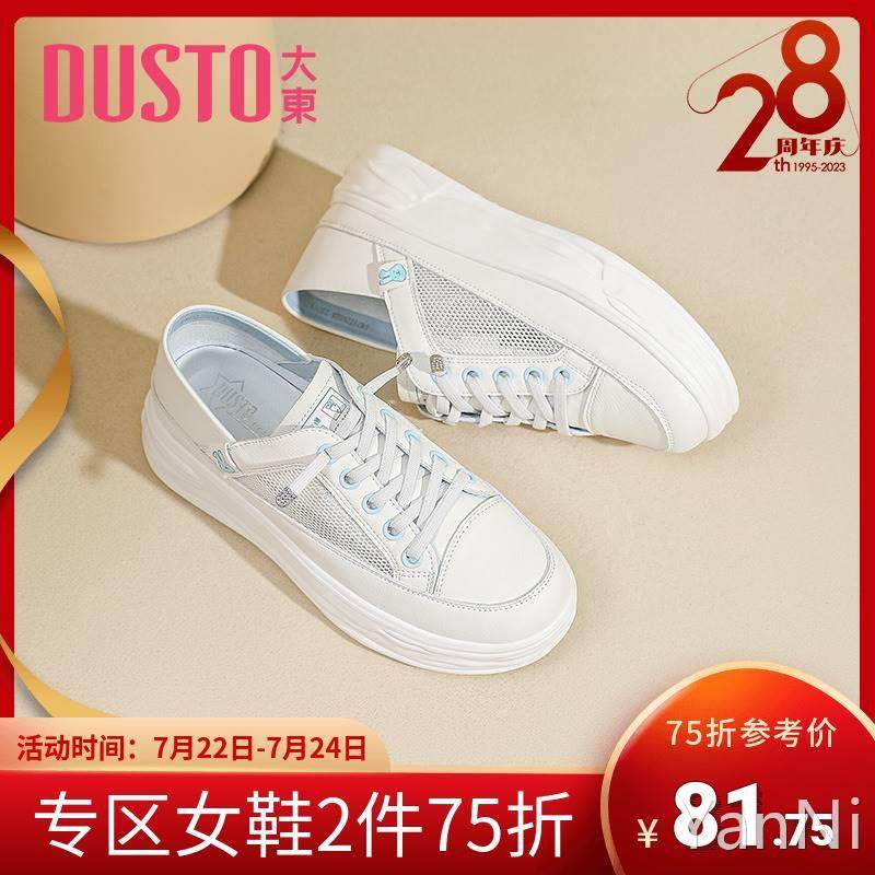 大东小白鞋女真皮2023夏季新款网面透气学生休闲运动鞋厚底板鞋女