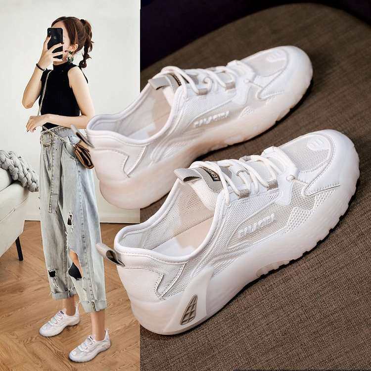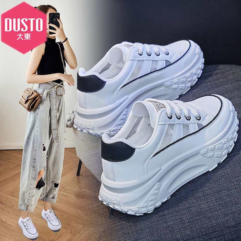 大东新厚底小白鞋女夏季镂空透气网鞋女款网面百搭薄款休闲板鞋子