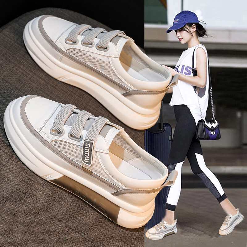 大东小白鞋女2023夏季新款休闲可爱厚底镂空魔术贴圆头板鞋0676