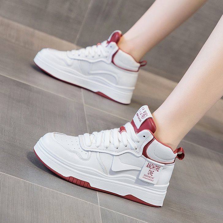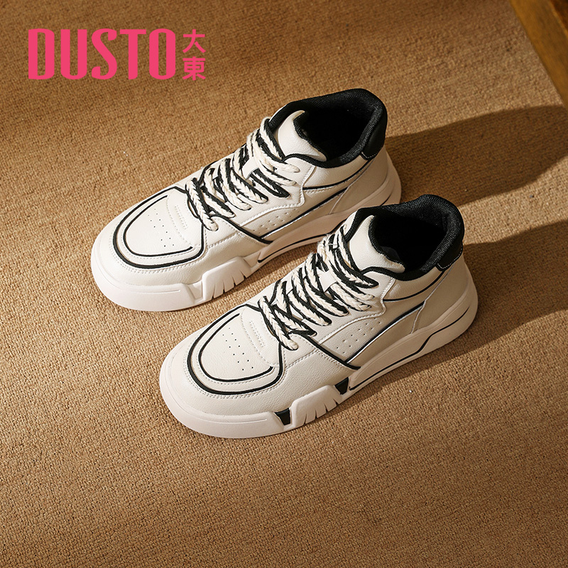 大东透女真皮时尚高帮小白鞋四季新款学生休闲鞋百搭情侣运动鞋子