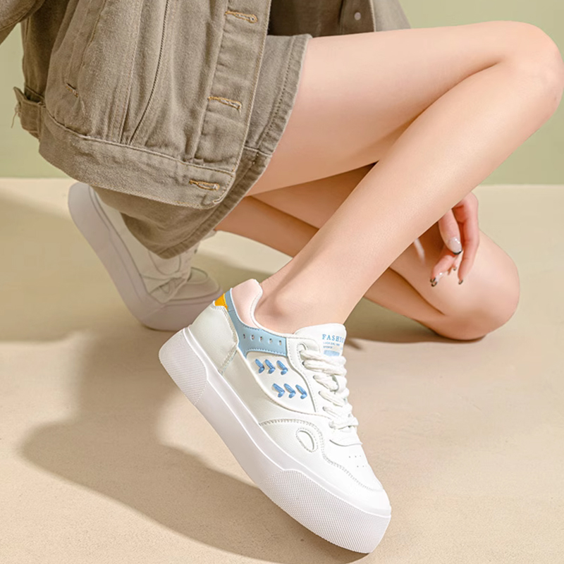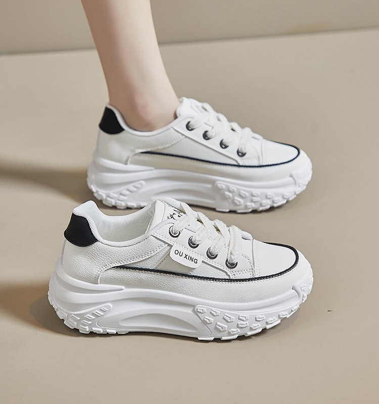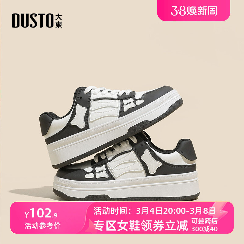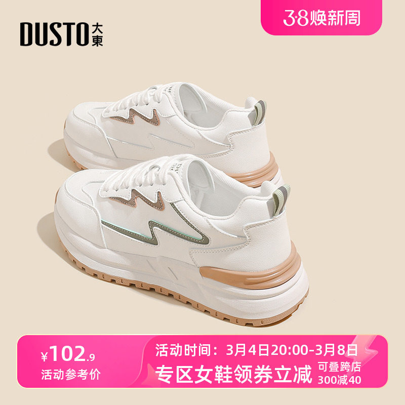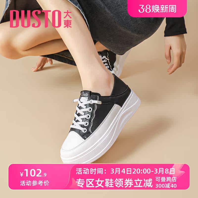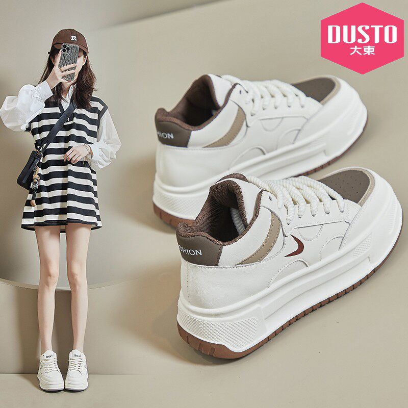 大东小白鞋女2023春季新款休闲厚底时尚潮流系带运动板鞋0317