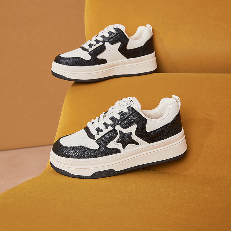 大东小白鞋秋季新款休闲圆头星星松糕厚底系带通勤女鞋1435
