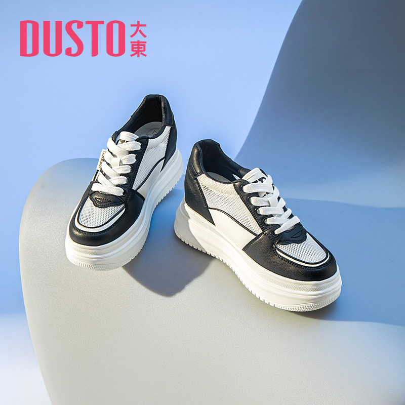 大东板鞋女2023夏季新款休闲圆头内增高透气系带小白鞋女鞋0301