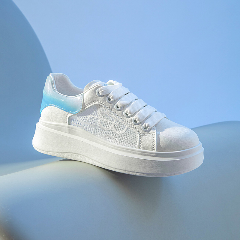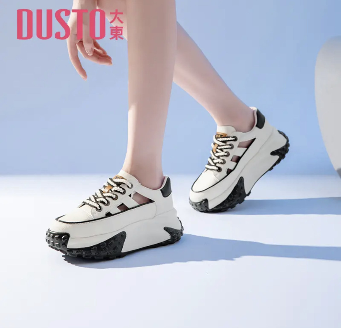 大东小白鞋女2023夏季新款休闲厚底系带透气镂空时尚运动板鞋0902
