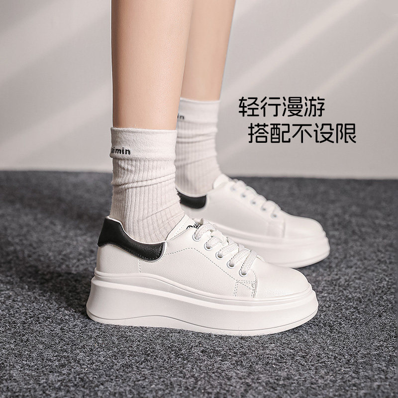 小白鞋女2023年秋季潮流韩版运动女鞋百搭透气学院风厚底增高板鞋