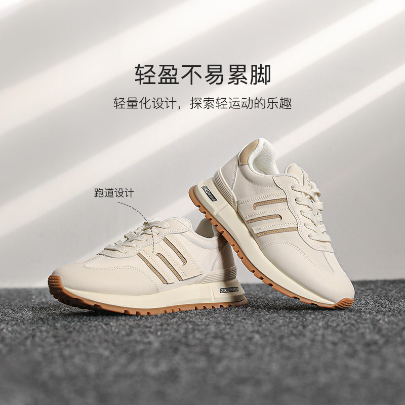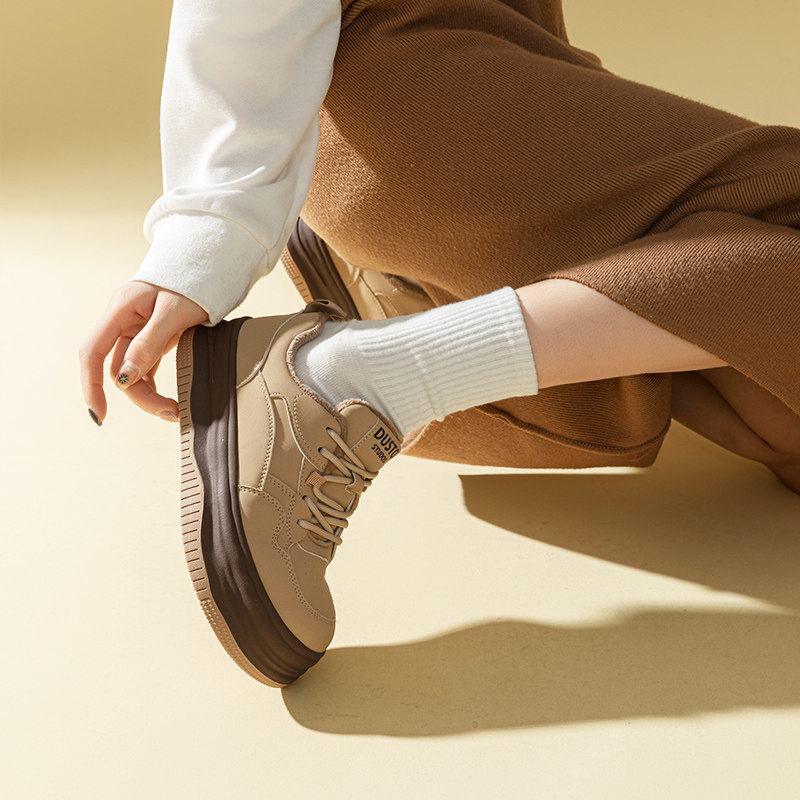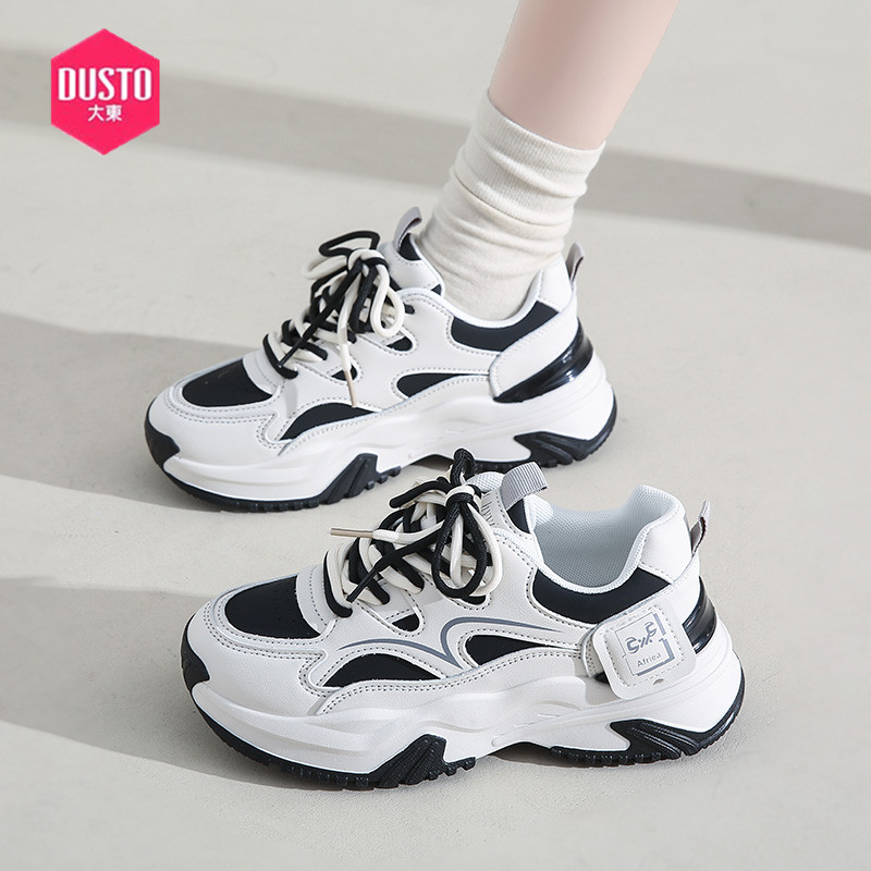 大东小白鞋女鞋2024春秋新款休闲圆头厚底阿甘鞋系带运动鞋1328