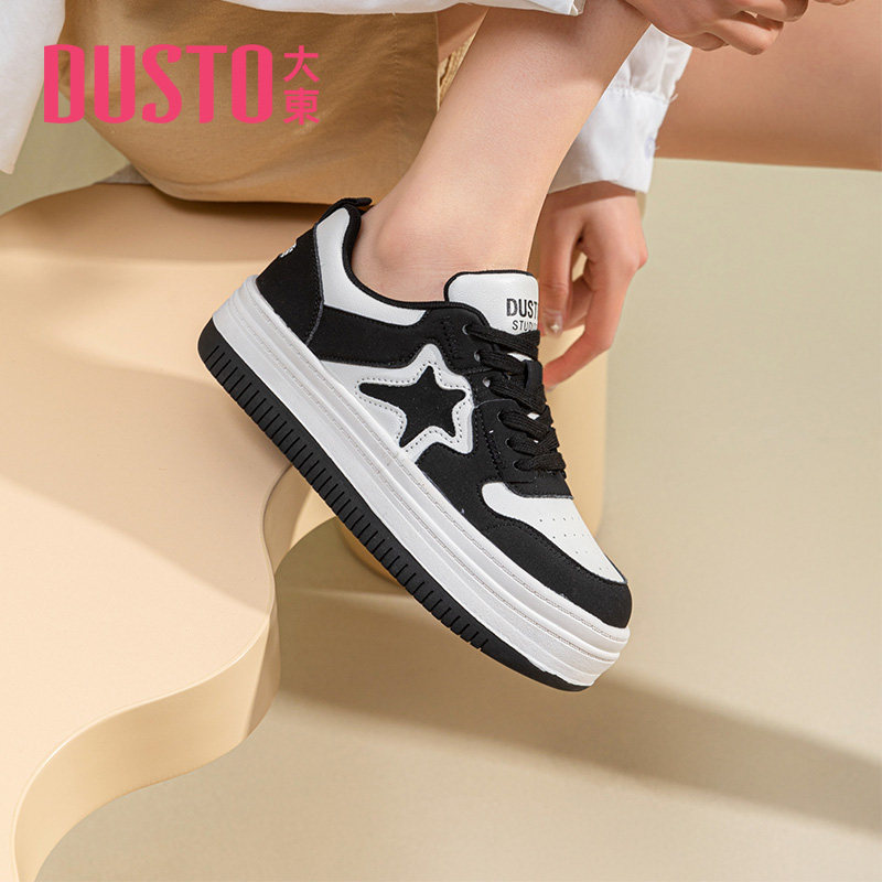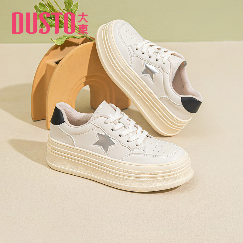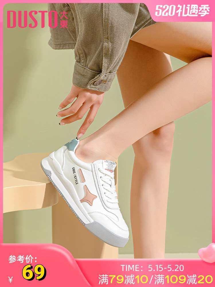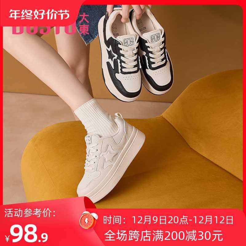 大东官方旗舰店小白鞋女2023年春季休闲时尚圆头厚底系带星星板鞋