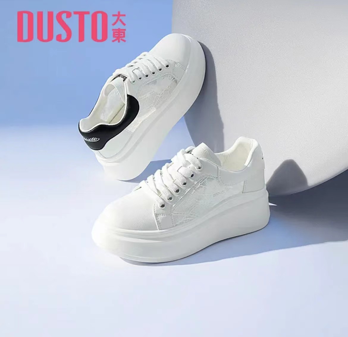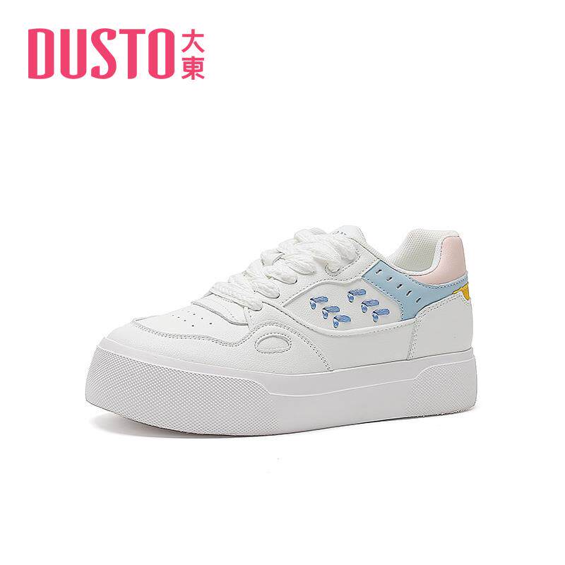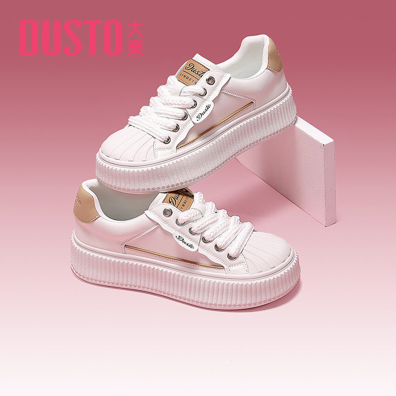 大东时尚运动鞋2024春季新款休闲中跟平底板鞋圆头小白鞋女鞋3076