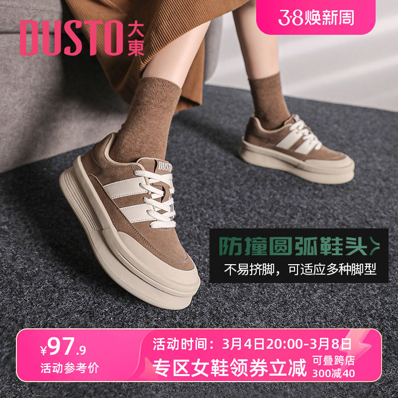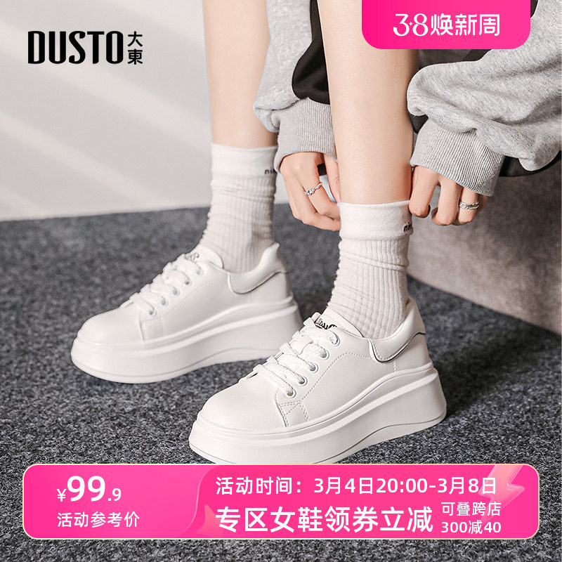 大东官方旗舰店时尚板鞋女2023年春季新款中跟平底小白鞋圆头女鞋